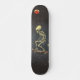 Stellar Alien Skater, showcases a unique AI-enhanced design featuring a skeleton riding a skateboard through a starry cosmos. This fantastical visual blends the surreal with the skeletal, as the bony figure maneuvers effortlessly under a large, ominously red planet. The dark backdrop dotted with stars gives a sense of infinite space, enhancing the eerie yet playful theme of a skeletal voyager in the universe. This deck captures a whimsical and slightly gothic aesthetic, perfect for skaters who want to make a bold, artistic statement on the ramps and streets.