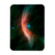 Stellar winds flowing out from the giant star Zeta Ophiuchi are making ripples in the dust as it approaches, creating a bow shock seen as glowing gossamer threads, which, for this star, are only seen in infrared light. Zeta Ophiuchi is a young, large and hot star located around 370 light-years away. The fine filaments of dust surrounding the star glow primarily at shorter infrared wavelengths, rendered here in green. The area of the shock pops out dramatically at longer infrared wavelengths, creating the red highlights.