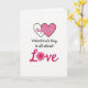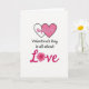 This card features a white background with two connected hearts near the top, one outlined in black and the other filled in pink. Inside the hearts, the words “Step Dad” appear in a smooth, cursive-style black lettering that makes the relationship feel front and center. Under that, the line “Valentine’s Day is all about” is written in simple black print, centered and easy to read. The bottom of the card highlights the word “Love” in large magenta cursive-style lettering, stretching across the lower area. A small pink rose with tightly layered petals sits inside the “o” in “Love,” adding a gentle, romantic detail. The black-and-pink color mix keeps the look focused and sweet, and it feels like a sincere way to say thank you for steady care and support 🥰. It’s a meaningful card for a stepdad who matters, and it’s a warm way to share Valentine’s Day sentiments ❤️.