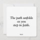 Encourage someone to trust God and take bold steps of faith with this stunning greeting card. Featuring a breathtaking sunrise and a symbolic journey of faith, this card inspires courage, hope, and divine trust. Perfect for any occasion where encouragement is needed.