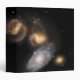 This visualization provides a new perspective on the galaxy group known as Stephan's Quintet. The bright blue and red galaxy (NGC 7320) is well in the foreground compared to the other four galaxies (NGC 7317, NGC 7318A, NGC 7318B, and NGC 7319). The sequence also includes a ground-based view of NGC 7320C (left side of this image), which is traditionally not considered part of Stephan's Quintet, but which astronomers have shown is at a similar distance and is part of the physical grouping.