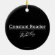 Lightweight, smooth, pure white ornament with nice sheen. Perfect size to be seen from across the room ... and to attract closer inspection! Price was great for ordering enough for the whole family! Clear, bold black design just as requested. Matches the order exactly. Just so nice!