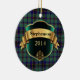 Colorful plaid ceramic ornament, with the traditional colorful clan Stephenson tartan plaid pattern, as a background. Graphics of a hunter green and gold tone shield like plaque, has custom black and gold tone text ready to personalize. Great looking family heirloom ornament. Makes a great gift ornament and decoration for other uses around the house.
