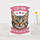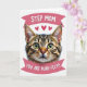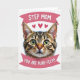 This greeting card shows a front-facing tabby cat centered on the page, with warm brown and deep black fur and a small pink nose. The cat’s wide green eyes catch tiny points of light, giving it an alert, sweet expression. A bright pink banner across the top reads “STEP MOM” in white letters, with three red hearts nearby ❤️. Another pink banner along the bottom says “YOU ARE PURR-FECT!!” in rounded white lettering that feels friendly and easy to read. The background is plain white, so the cat’s face and the pink banners stand out right away. It feels meaningful to give because it mixes a little humor with real affection, like a simple reminder that she’s loved and appreciated 🥰. It’s a nice choice for a step mom who likes cats, or anyone who’d smile at a warm pun. Hope it helps you share Valentine’s Day sentiments.