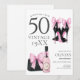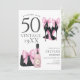 Celebrate stepping into 50 with this trendy invitation featuring chic designer black high heels with coquette pink bows and elegant pink champagne and bag. Perfect for a glamorous and unforgettable 50th birthday party.