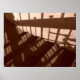 This is a sepia toned digital photo of the sunlight casting shadow of railings down a short flight of steps. Location: Welsh National War Memorial in Cathays Park, Cardiff. U.K.