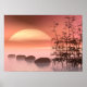 Zen steps upon water to the horizon next to bamboos by red sunset