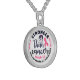 Keep your favorite image, design, or words of inspiration close your heart with this beautiful, custom made, sterling silver necklace. Choose from a number of options like size, style, and color for the perfect accessory or a heartfelt present. The necklace arrives in a special black felt bag that is perfect for gifting.
