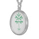 Sterling silver 1" diameter pendant with a green chevron sapling on a 16" sterling chain with a 2" extender.