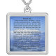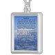 Good size. Sterling silver is classy. The prayer is the most important thing, so-- why use a photo in the background that obliterates the last third of that prayer? Makes no sense. Big disappointment.