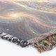 A quality printed throw has its advantages. This is a much finer weave throw than its loopier cousins, and though lighter, it is worth the investment for custom room accessorizing. The back is much prettier than the typical brown, and the fringe on the long sides very vivid, the selvage nicely done. Before photographing, I washed the throw in cold water, delicate, with a thicker woven throw the same size. On tumble dry low, this throw was dry in half the time as the other. This is a very practical quality if you use throws for furniture covers or to wrap up in frequently. The sleekness of the fabric makes it a great layer for accenting or protecting without the feeling of sitting on too much stuff. Perfect for napping or when you feel a light chill coming on. The color printing is beautiful and on this fabric, matched the design and color of my Photoshop image. This is an advantage for blending room fabrics and colors. The fringe on the short sides prints the colors from the design image and therefore varies from the side fringe. I streaked a white fractal line through the plaid pattern to give the illusion of weaving. This printed as crisp as an illusory thread, and put some white in the short side fringe, showing another advantage of print vs loomed- for artistic purposes, line lines, detail, and color integrity can be planned and preserved. My loomed throws have color limitations and more of a needlepoint texture. Print throws reproduce an exact image. The throw felt a little stiff straight out of the package, but this went away in the first delicate wash. Of course I searched the wash water for ink or bleeding and there was none.