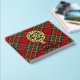 Clan Stewart crest badge surrounded by a strap and buckle over Royal tartan background. Custom front, back and spine text.