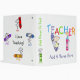 An adorable and colorful binder that's perfect for teacher to keep all her important papers and projects! Features several stick figures with coloring crayons of various colors and kid style text. You can easily personalize this teacher binder with a name before ordering!