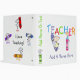 An adorable and colorful binder that's perfect for teacher to keep all her important papers and projects! Features several stick figures with coloring crayons of various colors and kid style text. You can easily personalize this teacher binder with a name before ordering!
