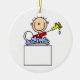 Lightweight, smooth, pure white ornament with nice sheen. Perfect size to be seen from across the room ... and to attract closer inspection! Price was great for ordering enough for the whole family! Clear, bold black design just as requested. Matches the order exactly. Just so nice!