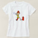 A stick figure firefighter with a hose and fire hydrant on stick figure firefighter T-shirts, mugs, mousepads, cards, stickers, buttons, and other items that can be customized with a name or text saying.