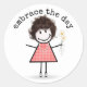 Stick Figure Girl In Sneakers with Quote Classic Round Sticker