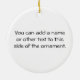 Lightweight, smooth, pure white ornament with nice sheen. Perfect size to be seen from across the room ... and to attract closer inspection! Price was great for ordering enough for the whole family! Clear, bold black design just as requested. Matches the order exactly. Just so nice!