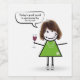 Cute girl stick figure in sneakers and green dress with a pearl necklace, hair, and holding a glass of red wine.