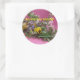 sticker,large 3-inch,pink with spring flowers in yellow,blue,white and yellow letters: "Spring has sprung!"