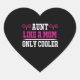 "Celebrate the special bond with this 'Aunt Like A Mom Only Cooler' sticker! Perfect for the aunt who is more than just family—she’s a mentor, a friend, and the life of the party. Featuring a stylish circular badge design with vibrant pink and white typography, this sticker is perfect for laptops, water bottles, planners, or phone cases. It makes a thoughtful and funny gift for birthdays, Mother’s Day, or just to show her she’s the coolest aunt ever!"
