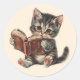 Cute cat reading book retro children illustration