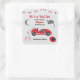 Get ready to celebrate in high gear with our race car-themed Thank you sticker! Featuring a playful red race car on a light grey background, paired with vibrant elements like a race helmet, speedometer, tire, finish flag, and party flags, this design is sure to rev up excitement. The bold retro-style text "He is a Fast One" showcases your little racer's name, making it uniquely theirs. All party details are easy to customize to make your celebration as special as possible. Perfect for parents planning a fun, action-packed party!
