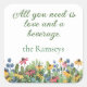 Bright watercolor coneflowers decorate these glossy 3" square stickers. Custom quote, personal or family name and a border of whimsical wildflowers on a white background. Change or remove the leaf green name and quote to make it yours using the Template provided. Six stickers to a sheet, 1.5" have 20 to a sheet. See "About This Product" at side for more information. HIGH reviews.