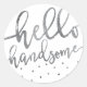 ntroduce your little one with this beautiful one of a kind Modern Silver Hello Handsome Script Photo Baby Birth Announcement Sticker. Don't miss the matching Hello Handsome Baby Collection in the "Dear Beautiful You" shop.