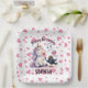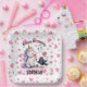 This delightful design features a cute, pastel-colored unicorn with a golden horn, happily singing alongside a little blackbird. Both characters are surrounded by floating pink hearts and musical notes, creating a joyful and whimsical scene. The unicorn, with its pink mane adorned with a flower, has a charming, childlike expression, adding to the playful and magical vibe. The name on the front and the back is customizable, change with the one you want!