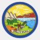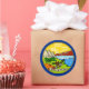 Crafted with meticulous attention to detail, this sticker is more than just an adhesive; it's a celebration of Montana's rich history and breathtaking landscapes. The design proudly displays the state flag, featuring the bold blue field with the state seal centered, depicting mountains, a river, and the state motto "Oro y Plata" (Spanish for "Gold and Silver").