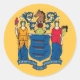 Crafted with precision, this sticker proudly showcases the flag of New Jersey, featuring a field of buff with a dark blue canton containing a light blue shield with three plows and a forward-facing horse's head above the shield. This emblematic design represents New Jersey's agricultural heritage and historical significance.