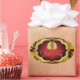 Wish it had some lettering on it, but such a cute design. No lettering. Another one of the few that come in oval without sacrificing graphics.
