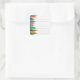 Many may not be aware, but there are several different types of colored pencils. The artist grade pencils, as you might expect, have a higher concentration and higher quality of pigment, more resistant to UV rays. There are student/business colored pencils, not as color intense and lightfastness is not really a consideration. Though limited in colors available, there are also refill "leads" for mechanical colored pencils. Also used as art medium, there are also watercolor pencils (which, amazingly enough, can be used wet or dry) and pastel pencils, which are harder than standard pastels and can be sharpened, like a pencil. Colored pencils are also called pencil crayons, because of their artistic applications (of course) but also because they are not graphite, like the usual "No. 2" pencil. Artistic and business/scholastic colored pencils have wax- or oil-based cores. Strangely enough, though the use of crayons can be traced back to the Greek Golden Age, it was as recently as the early twentieth century that artist-quality colored pencils actually went into production. This design is so much fun! A line of sharpened, colored pencils appear to have been dragged across a sheet of plain paper, leaving a line in their wake. Greens, blues, oranges -- colorful and whimsical, these fabulous stickers are perfect as library/books plates as lines are provided for you writing in identifying information; they are also perfect for scrapbooking -- especially for journaling entries.