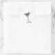 A brightly colored martini glass filled with a wavy rainbow of cocktail fun and garnished with the classic cocktail olive on a martini pick. Perfect for any party or happy hour celebration.