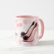 Hand drawn pink stilettos print on coffee mug.