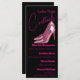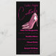 This glamorous custom menu features a Ladies Night Cocktail party theme on a black background. The title "Cocktails" is printed across the top in a neon pink script font. A shiny pair of pink stilettos is placed below the event title, followed by a variety of sample drinks.