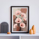 This floral artwork embodies refined serenity, merging nature and geometry through soft coral blooms, inky stems, and clean pastel block forms. The rectangular beige overlays create a sense of architectural order, which contrasts beautifully with the wild organic growth of the flowers.