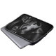 The sleeve is made of nice feeling material and seems very durable. I'm not sure how easy it'll be to clean, but the construction seems sound and the fabric is quick thick. I also like the double zipper. The printing is lovely and appears durable. The white on black contrast is nice, and the design very elegant.