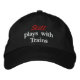 The design was easy to do with a number of options both the hat style, color and so forth. These aren't some printed letters, these are the real deal stitching. The two hats arrived quickly. I've used Zazzle in the past for shirts a number of times and this is the first time for a hat. Zazzle is absolutes the best in every respect; customer service, product selection and results. The embroidery was just right. My artwork was turned into a professional look thanks to Zazzle.