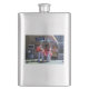 The product is a good size and came exactly as it was pictured. The lid is not attached to the flask, which could be dangerous on drunken nights... The print came out surprisingly well and looks very sharp. Would definitely recommend.
