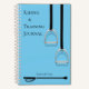 This attractive notebook for equestrians has a trompe l'oeil illustration of English stirrup irons (with black leathers) and a jumping bat. You can customize the front with your own title and additional information such as the year, date range, and your horse or pony's name.