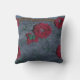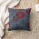* Energy Enhanced Floral Faux Denim fabric with subdued Hand stitched Brick Red Flowers throw pillow.