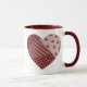 Housewares home decor for the country kitchen of the domestic goddess with a big heart. Simple, feminine, patchwork heart graphic design. Big heart on each side has vintage primitive or folksy look. Patterns of hearts, stripes, polka dots in pinks, reds, black. With a little help from my friends at www.scrappindoodles.com. From She Wolf Medicine.