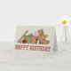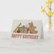 Lots of tools for sewers and stitchers, with a cute teddybear guarding them, underneath "Happy Birthday" in cross stitch font. A perfect birthday card for needle workers! Customize the inside with your personal message.