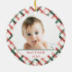 First Christmas as Grandparents - colourful Stockings full of presents. On the reverse side - round frame with tartan pattern and inside - your baby's photo