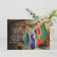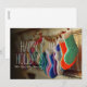 Stockings hanging along mantle holiday card
