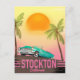 Stockton California USA vintage automobile travel poster cartoon.