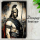Commanding warrior portrait with distinctive cross-banded helmet and flowing dark cloak. Masterful contrast between battle-worn armor and ethereal battlefield atmosphere.