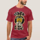 My 11 yo wore adult XL (5’7” 165#). The 8yo is small framed. She wore adult small and tied it in the back. Grandma wore adult large with long sleeve shirt underneath. Tall girl adult medium. Dark haired male adult large. Good quality dark Heather gray, Gildan brand shirt. -it was next up from basic choice and cost about $20 per shirt. Not too thick or thin. Washed and dried well, no major shrinkage. Not see-through. Can wear a bra under it fine. Screen print is just as shown and well done, front and back.